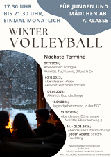 1x im Monat spielen Teens/Jugendliche Volleyball im Gemeindegarten. Im Winter treffen sie sich im Gemeindehaus. Termine siehe Gemeindeblatt.
